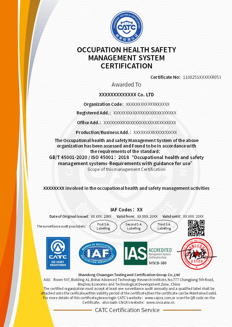 | 认证证书名称 | 职业健康安全管理体系认证证书 |