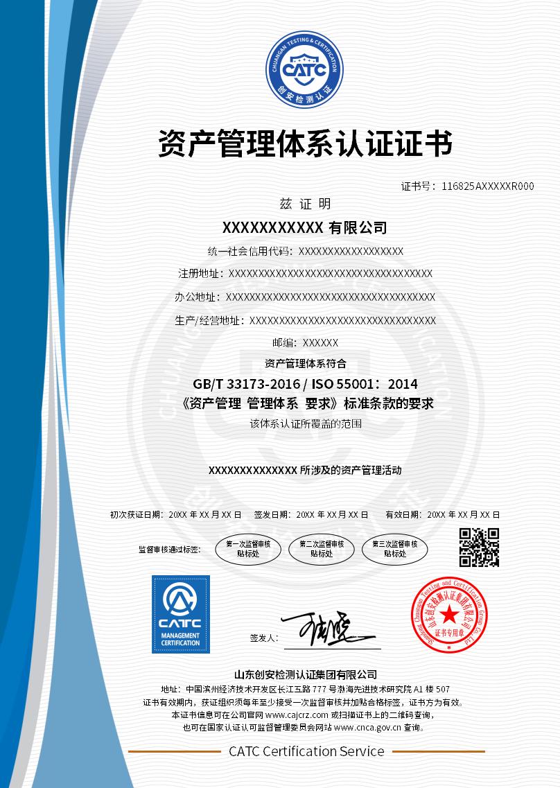 | 认证证书名称 | 资产管理体系认证证书 |